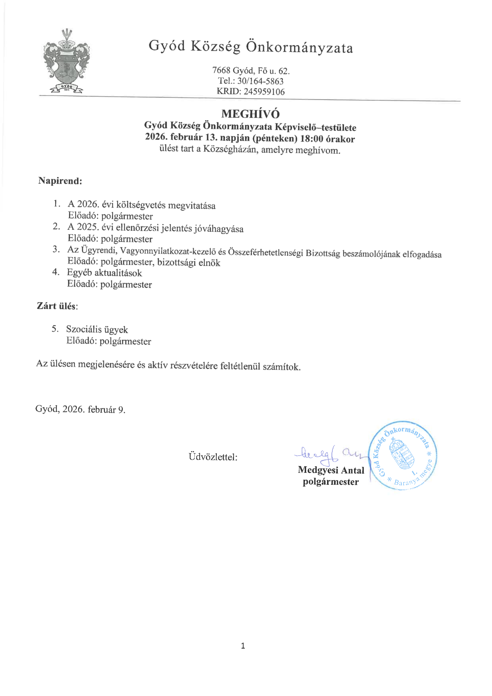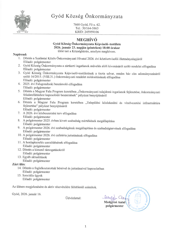 Meghívók a 2026-ban megtartott nyilvános testületi ülésekre